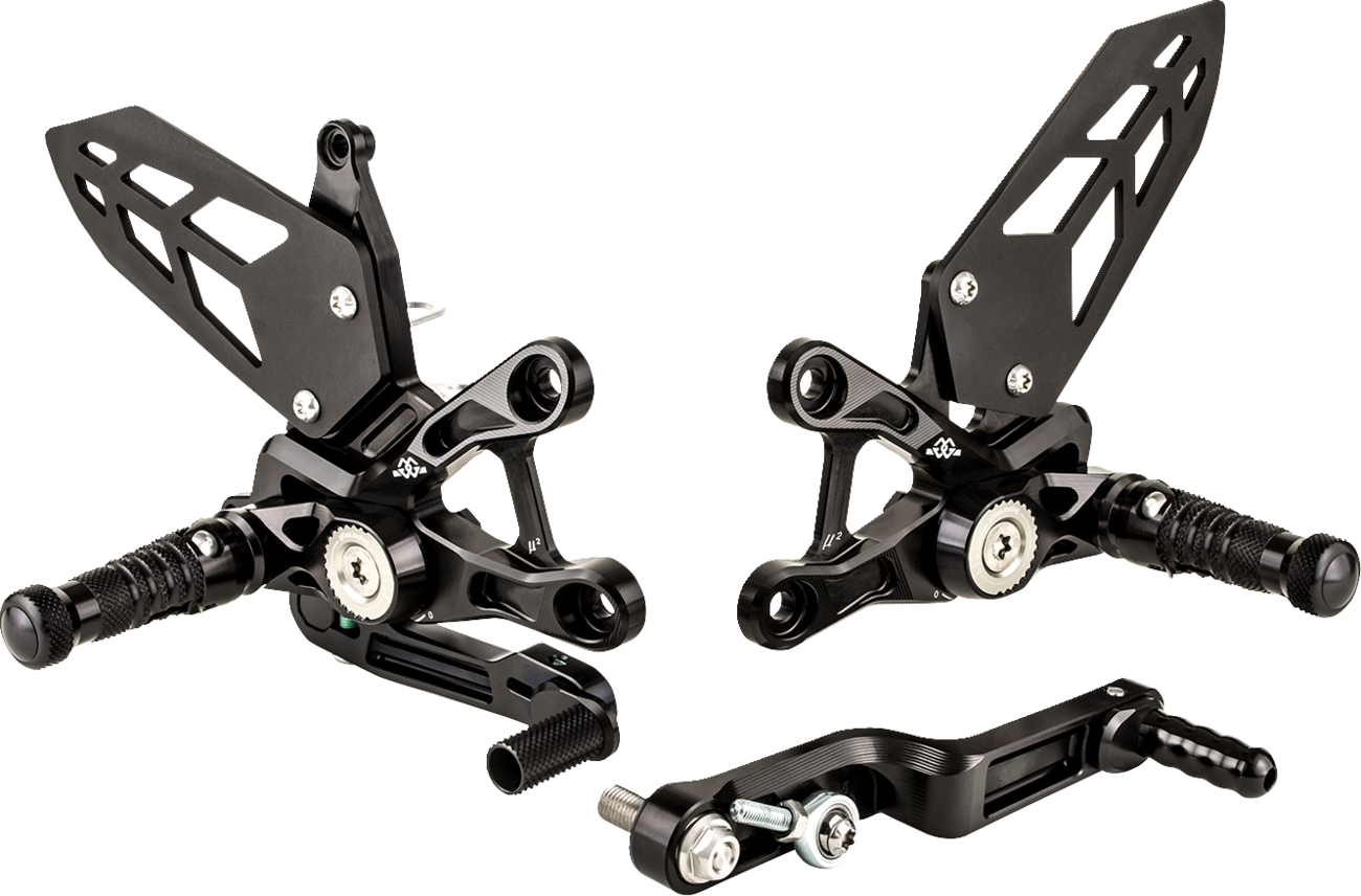 The positioning of the footrests is done by a combination of a push and rotatable setting at only one point, so this is really fast and easy selectable