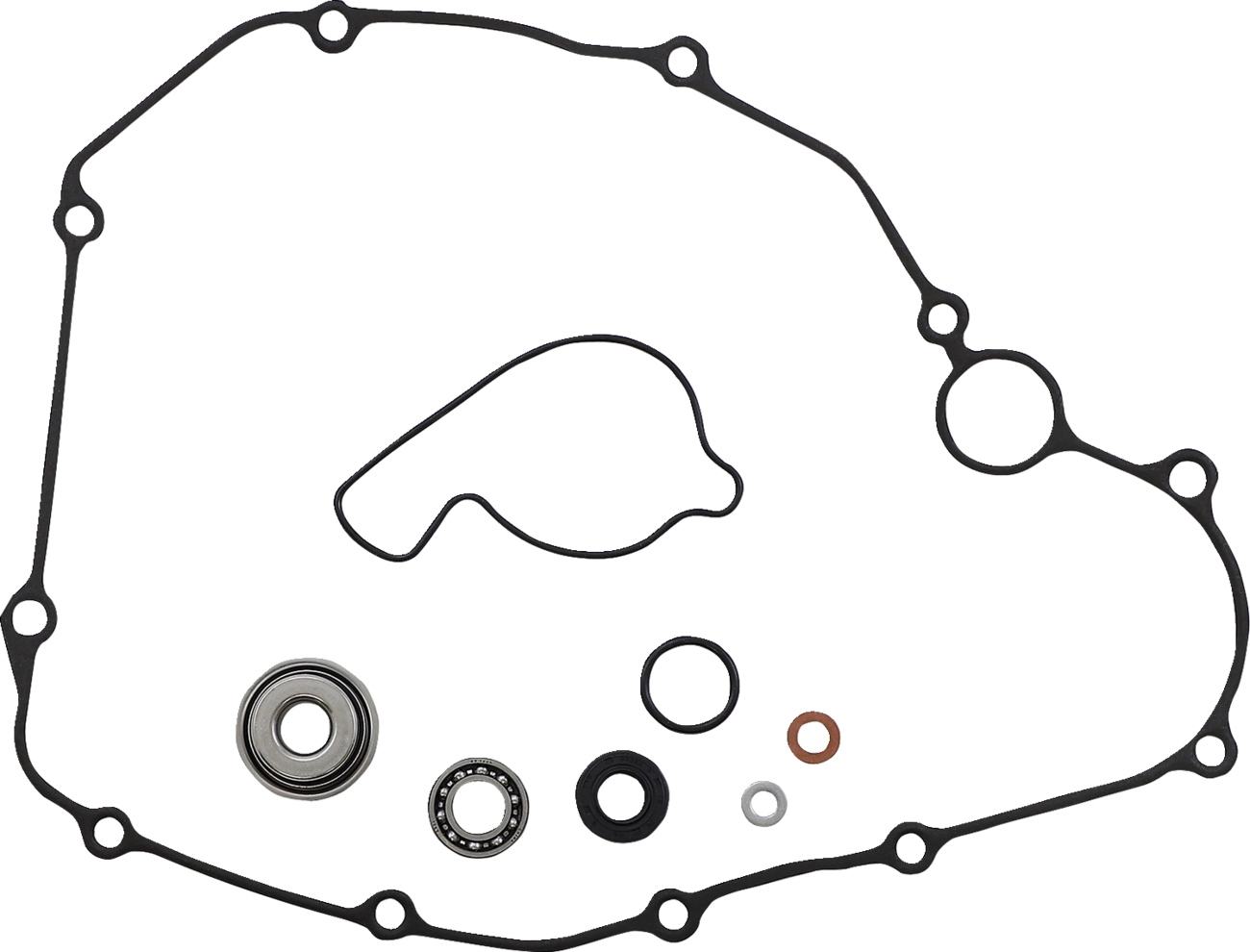 • Typical kit includes the following: bearings where applicable; rubber seals; mechanical water pump seal where applicable; side cover gasket; water pump gasket; snap rings located on water pump shaft and copper drain washers