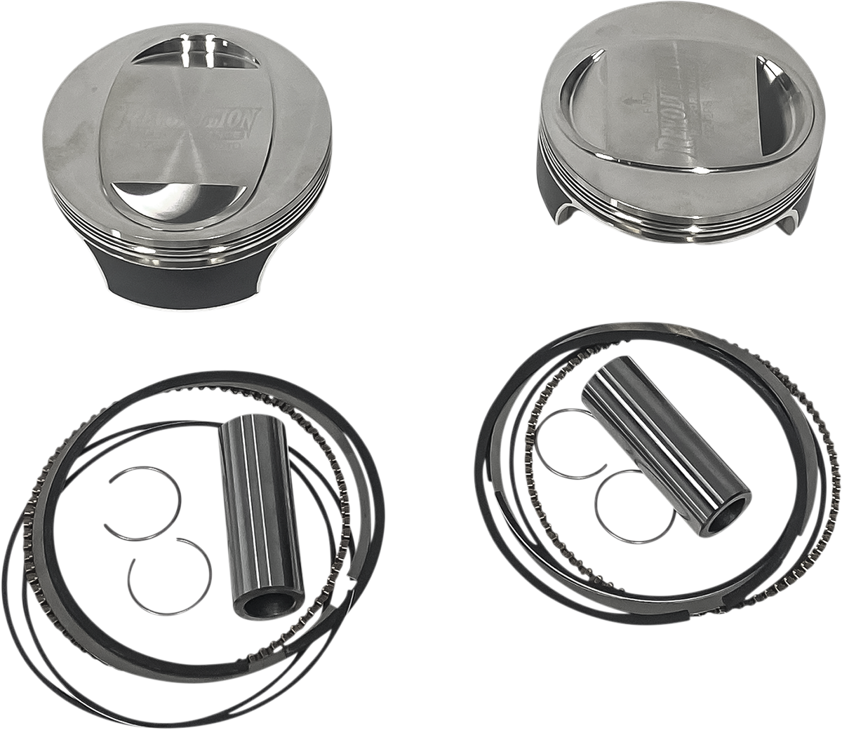 • Include pistons with skirt coating, rings, chrome piston pins and retainer clips