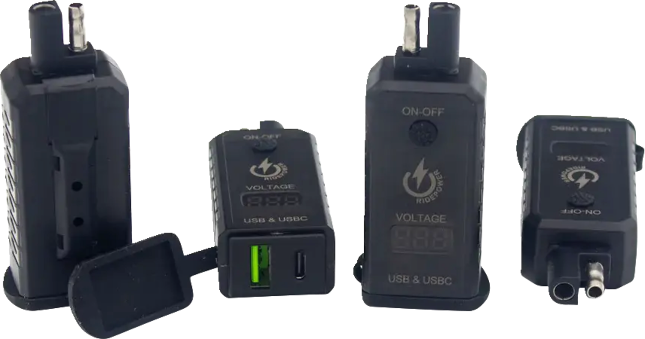 This high quality SAE to USB-C and USB port adapter features a switched on/off digital voltage display, allowing you to power your devices with either USB or USB-C charger cables