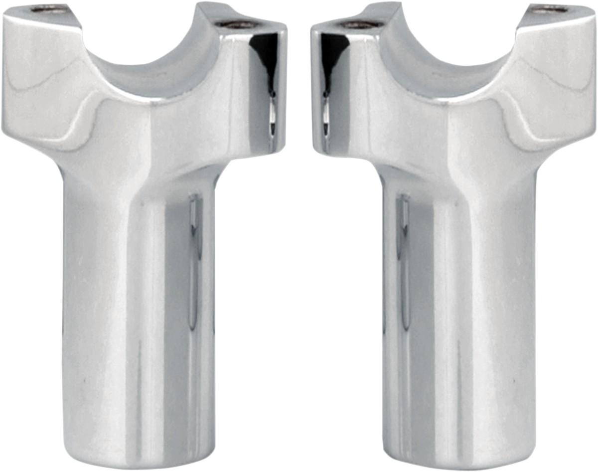 Blind hole tapped for standard 1/2" x 13 mounting boltsFits on all models with 3-1/2" center-to-center riser spacingWork with any standard 1" handlebar, Wild 1 Chubby Bars and most other bars with a 1" clamping sectionUse stock top clamp, after-market top clamp, or Wild 1 custom billet top clamps (with offset mounting holes)Made in the U.S.A.