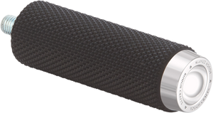 Rubber design features clean style with high traction rubber for excellent foot grip in all riding scenariosCNC machined billet end cap with laser engraved logoStructure and strength without the weight
