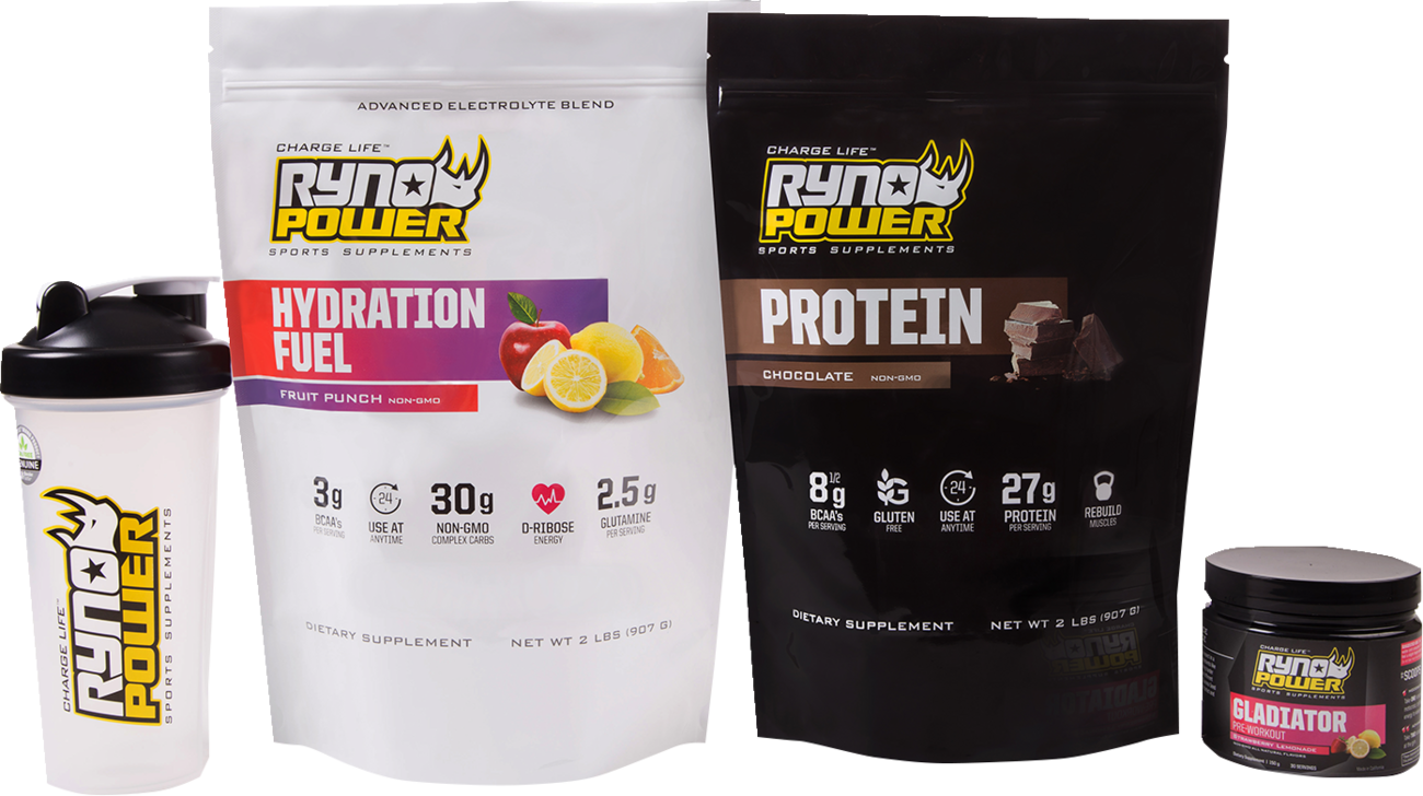 The Essentials Power Package supplies you with before, during, & after products to jump-start your training regimen, whether it's on or off the bikeThis 3 supplement package has everything you need to keep your body functioning at optimal levels and includes a Ryno Power Blender BottleAllow our award-winning sports drink to give you enough electrolytes & carbs to keep you grinding throughout your workoutOur high-quality protein powder helps rebuild muscles & features 8.5 g of BCAA's per serving. It can be taken anytime & has 27g of protein per serving. (Choose from Chocolate or Vanilla flavor)Using this drink mix before your workout gives you the energy and the mindset to take your training to the next levelThis genuine and BPA free shaker bottle is perfect to mix any Ryno Power drinkMade in the U.S.A.