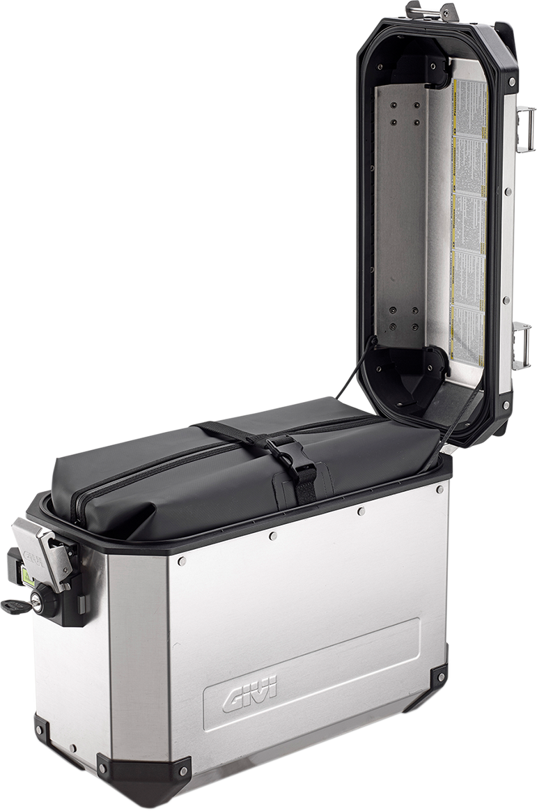 Bag with rectangular basis that can be used in Trekker Outback 37 Liter CasesIt can be used on the lid of the top-case or as a saddle bag, fixing it with standard elastic strapsMade from PVC Tarpaulin 500D in accordance with Reach regulations, high-frequency welded, seamlessFeatures: Roll down closing system to ensure fully waterproof functionality; air vent; shoulder straps; two tubular fluorescent yellow elastic straps with hooks35 liter waterproof inner bag