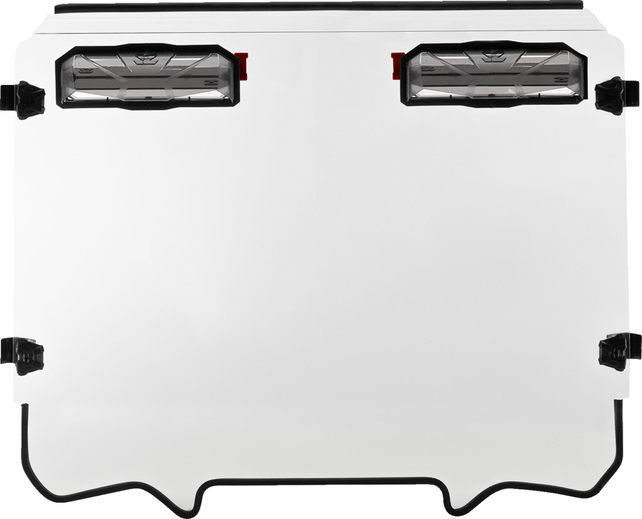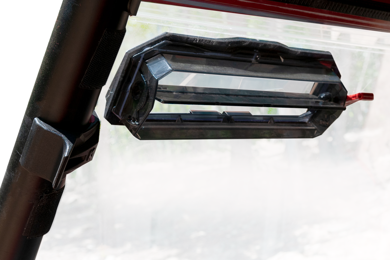 Two sided hard coated polycarbonate windshield maximizes visibility while minimizing physical and UV damageThe vehicle specific designed gasket creates a weather tight sealWorks with Seizmik mirrors and framed door kitsWindshield closes easily and latches shut with minimal forceOpens with a quick, low-effort twist of the handleSpherical ball rod ends utilized as self-aligning hinges allowing for a smooth range of motion with less bindingCenter retainer and rub plate serves as a upper hinge point and helps minimize oscillation when riding with the windshield in the opened positionErgonomic handle for an easy grip with or without glovesLess visual distraction 3/4” round tubing paired with glass filled nylon mounts creates a slimmer profile than similar stamped steel systems2 tinted polycarbonate vents made of durable and impact resistant polycarbonateGasket sealed components for protection against wind and water intrusionIncoming air can be directed at the inside window surface to help prevent foggingEasy to use louver with detents makes changing the airflow through your vents simpleSpecs
