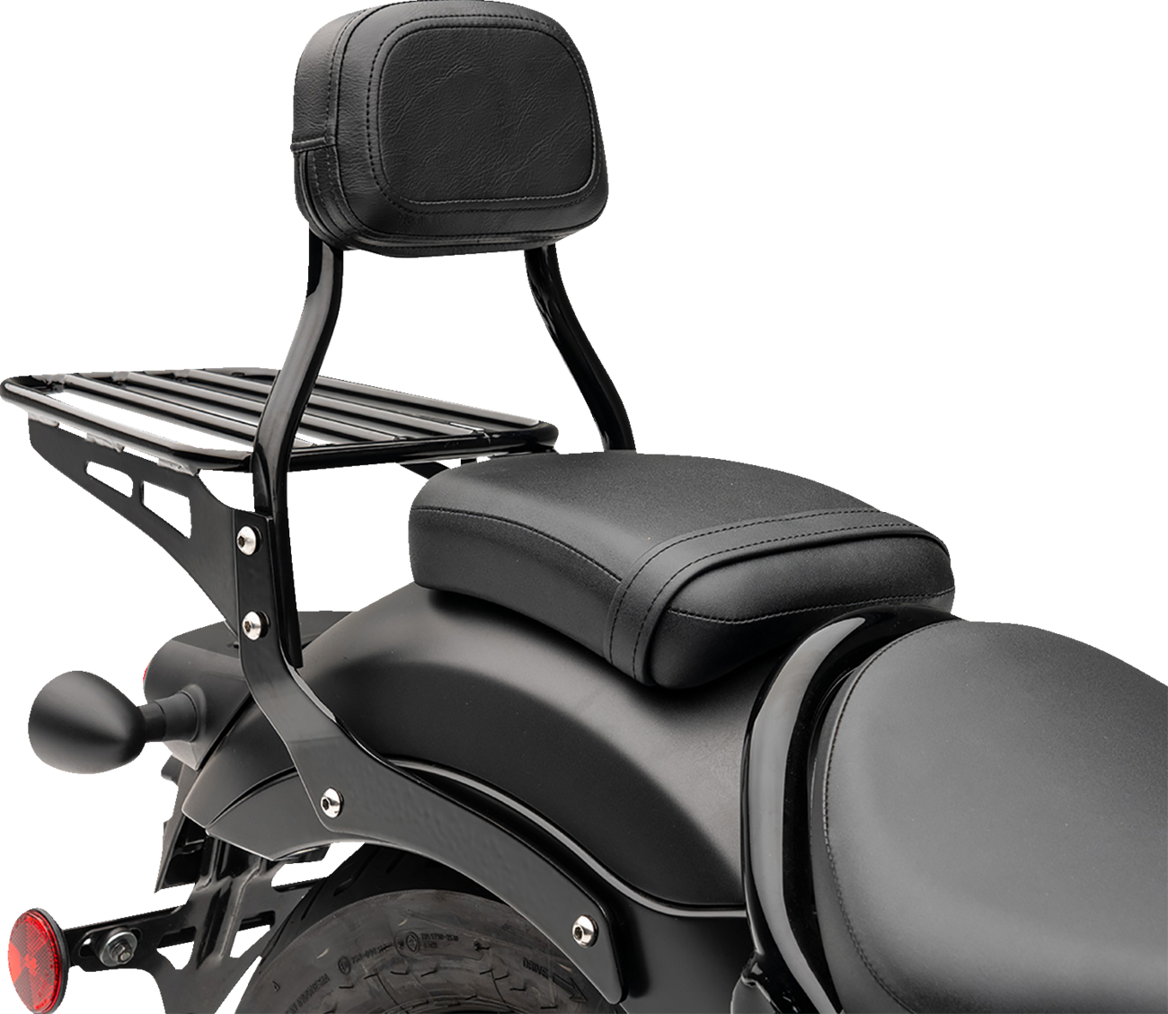 Provides support when carrying a passenger Can be used when packing items on the passenger seatBlack powder coated finish on the round barIncludes all mounting hardwareIncludes the padMade in the U.S.A.Specs