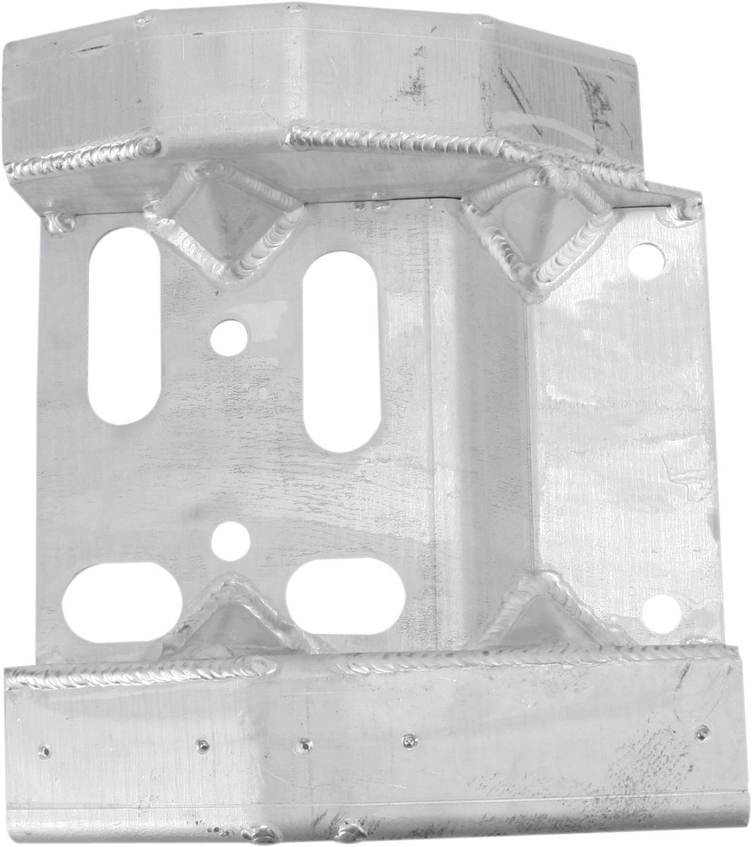 Protect expensive rear brake rotor, swingarm, sprocket and chain from rocks, debris and unwanted sudden impactsHelp ATV glide over obstacles in the pathDurable oil and gas resistance rubber is riveted to chain side, eliminating chain noise from slapping on the swingarm skid plateMade of .190" thick, lightweight, high-quality aluminum plateExtra reinforcement gussets are added to increase durabilityHandcrafted precision heli-arc welds for superior strengthAll hardware included for installationSpecs