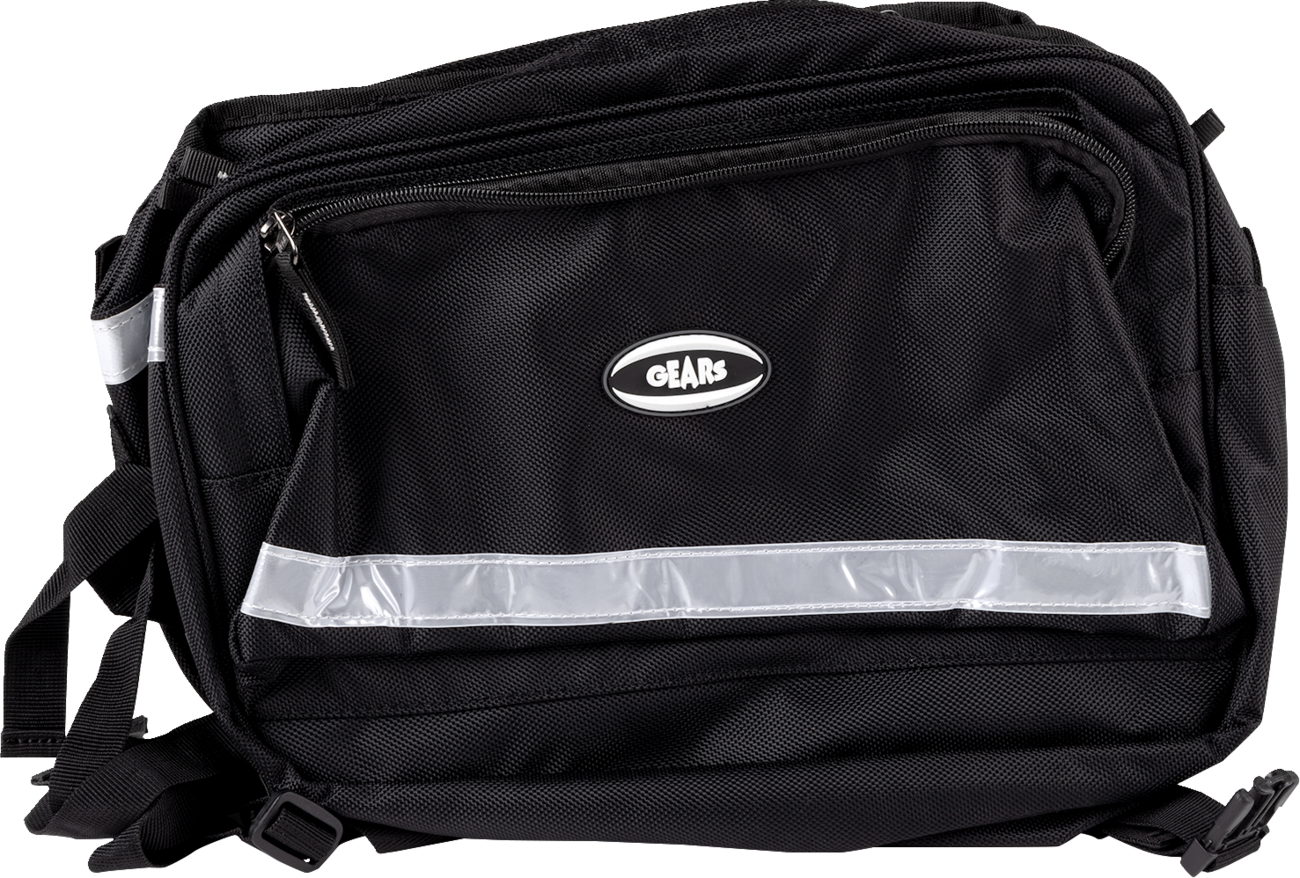 Large main compartments with rigid inner supportsRugged rubber handlesLong pull tabs for easy accessReflective back stripFastex quick-release buckles