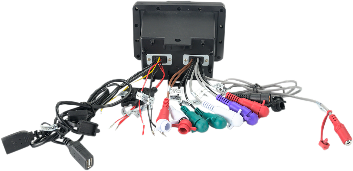 Large 3” TFT multi-line full-color LCD screenBluetooth® compatibleAM/FM weather band HD radioRear USB port for music playback and 2.1A chargeIncludes a pair of rear auxiliary inputsCoaxial digital audio outputUV-resistant face plate and trim ringZero current draw memory backup to save battery when idleIPX6 rated4V RCA F/R/Sub reverse camera outputs