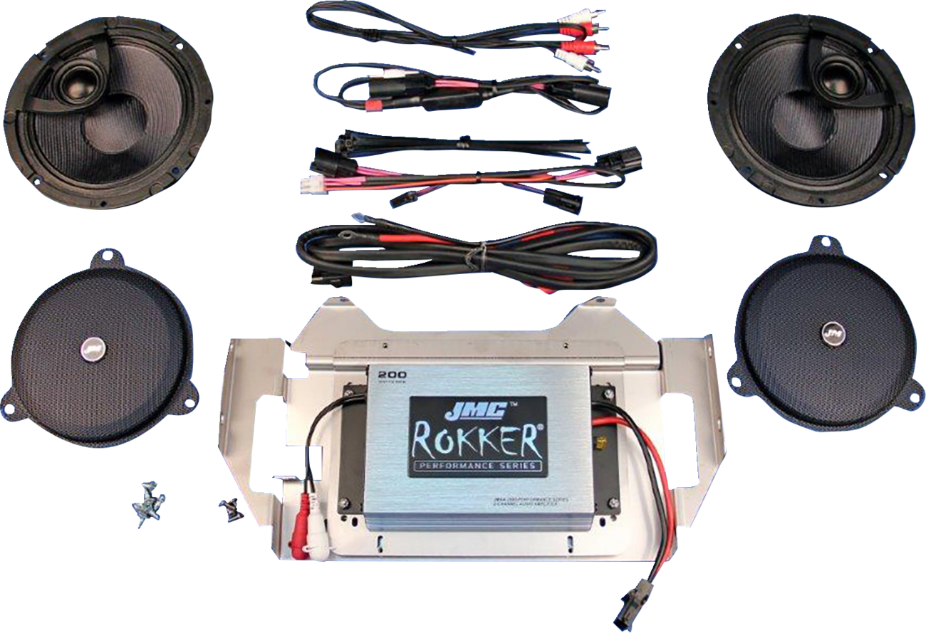 • The ROKKER 2-channel 200 W amplifier kit has been designed specifically for use in the fairing with the stock Harley 4.3 Std, 6.5GT or GTS touch-screen radio, and is tuned for the stock Harley flash, NO SPECIAL FLASH needed
