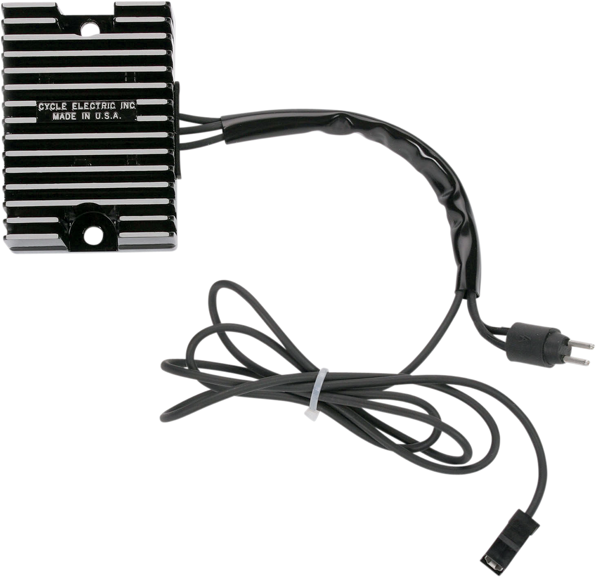 • Cycle Electric rectifying regulators block current to control voltage; this reduces stator current, resulting in low temperature and less drag on the motor, which means more efficient operation