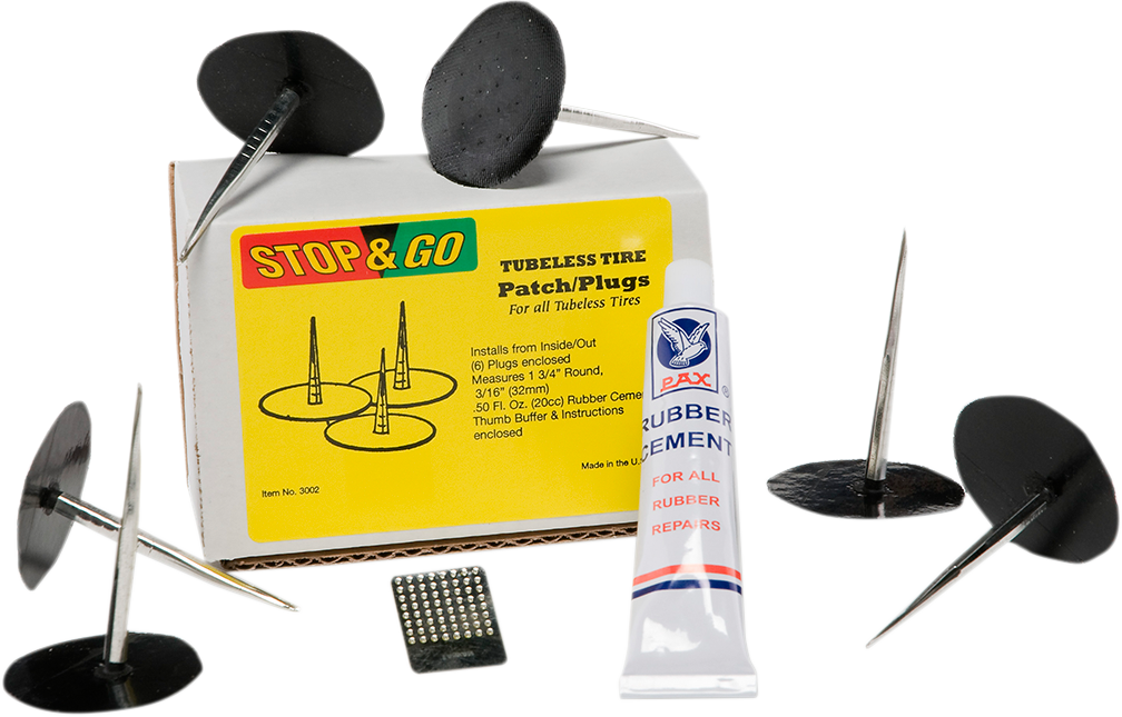 Replacement (qty 6) patches/plugs and (qty 1) rubber cement for CO² tire repair kit