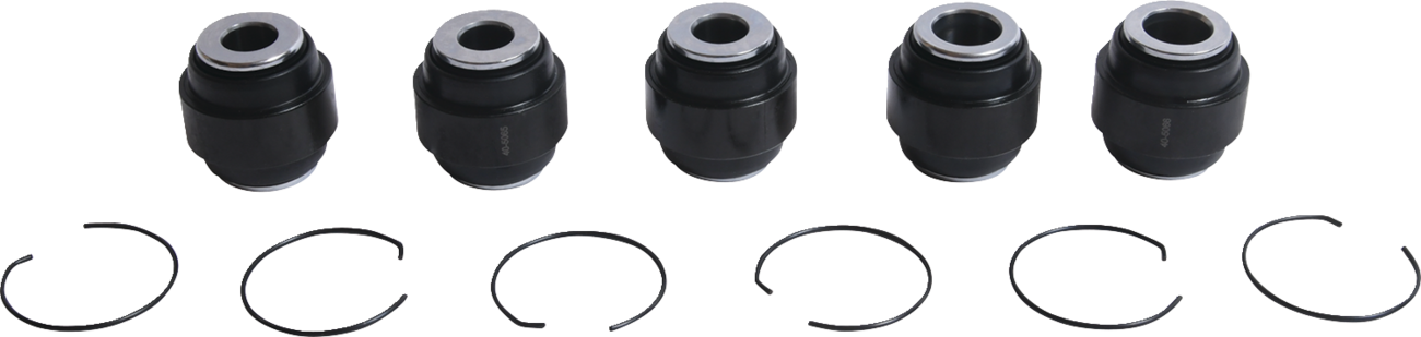 Cost-effective kit containing all bearings, bushings, seals, shafts and miscellaneous components to repair the rear upper and lower A-arms and knuckle