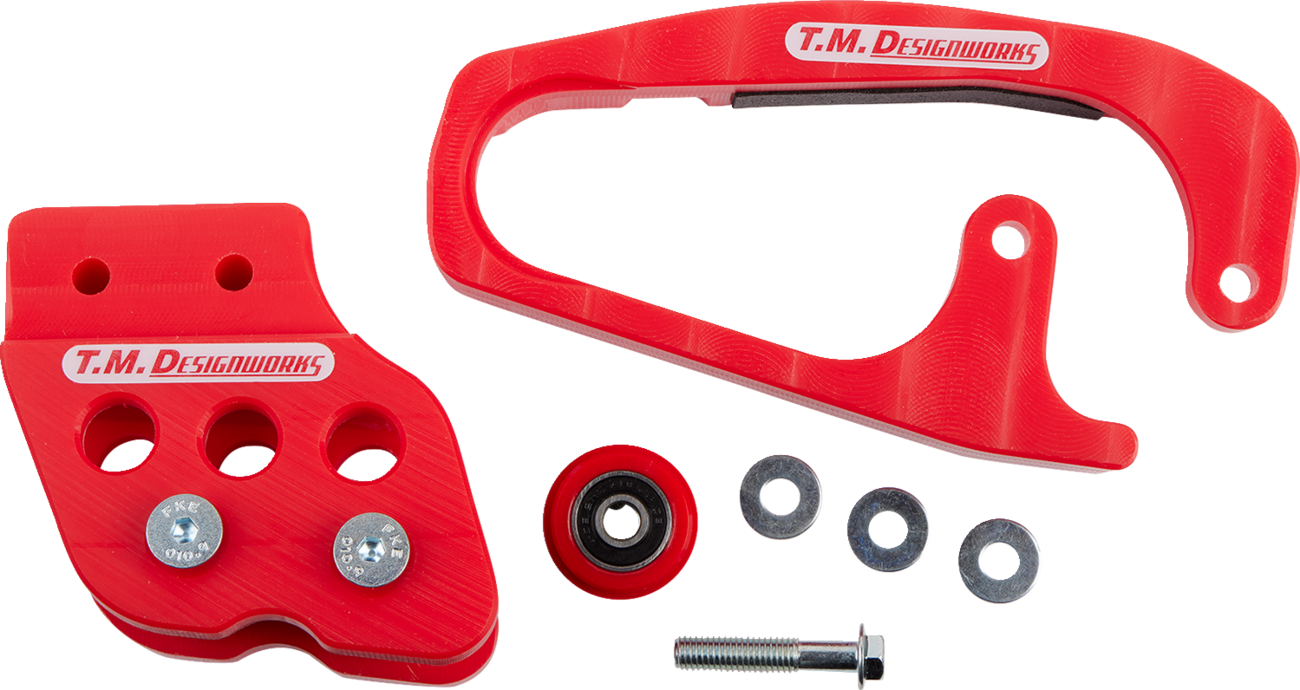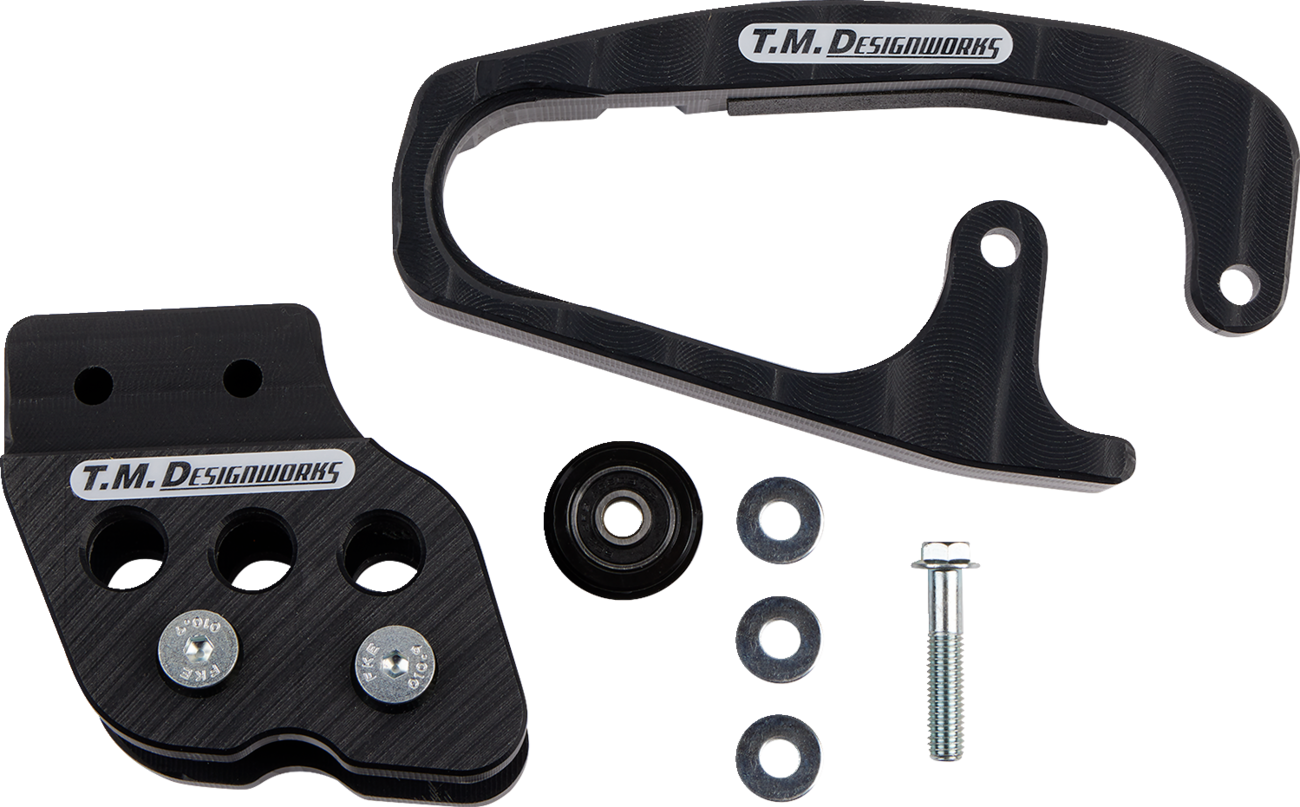 The kit includes dirt cross chain slider, lower powerlip roller or frame pad, and rear chain guide (either factory edition #1 or #2)The dirt cross sliders are made from the TMD compression-injected propriety plasticMost dirt cross sliders have noise-reducing dampening pad installedSpecs