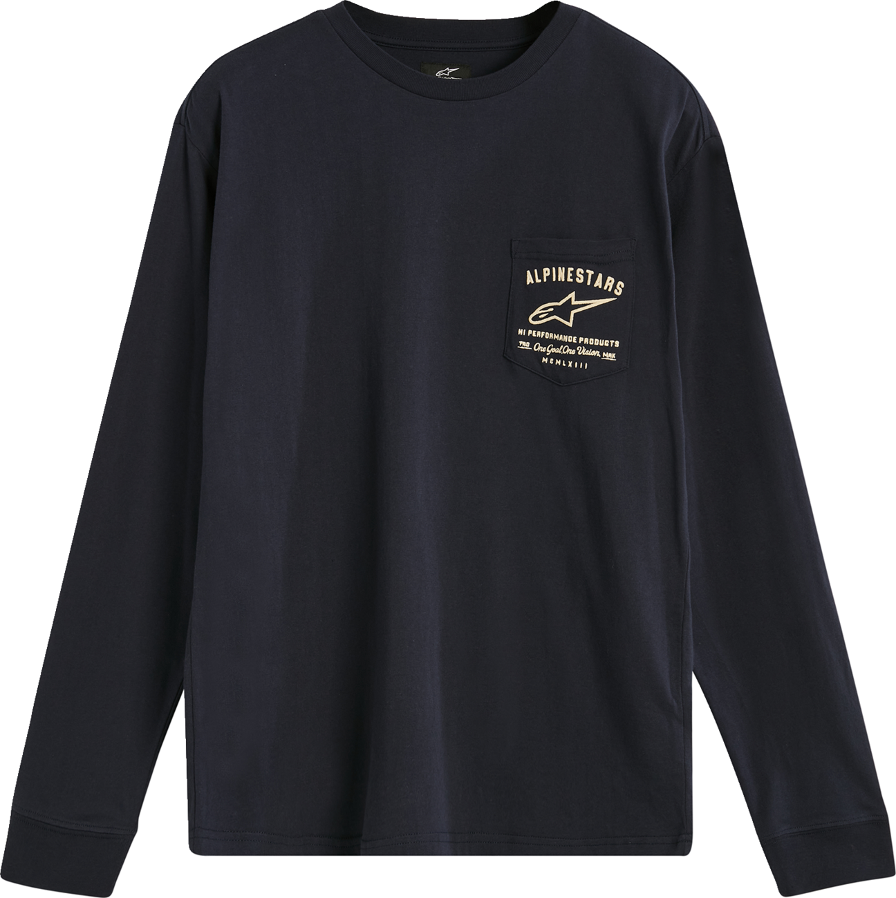 100% Jersey Cotton with crew neck pocket knit t-shirtBack and pocket heritage signage graphic in print and embroideryHeavy jersey fabric; sleeve print and set-in rib collar, rib cuffsInternal neck print, external labeling