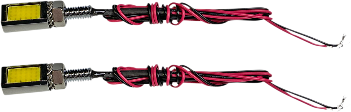 Tag Bolts offer super bright chip-on-board white LEDs embedded into the side of each bolt to provide license plate illuminationSimple 2 wire installation, 26 AWG with 18" wire leads for easy wire tap-in to run power and groundTag Bolts have a M-6 x 1.0 thread, thread diameter is .232", threaded shaft length is .59"