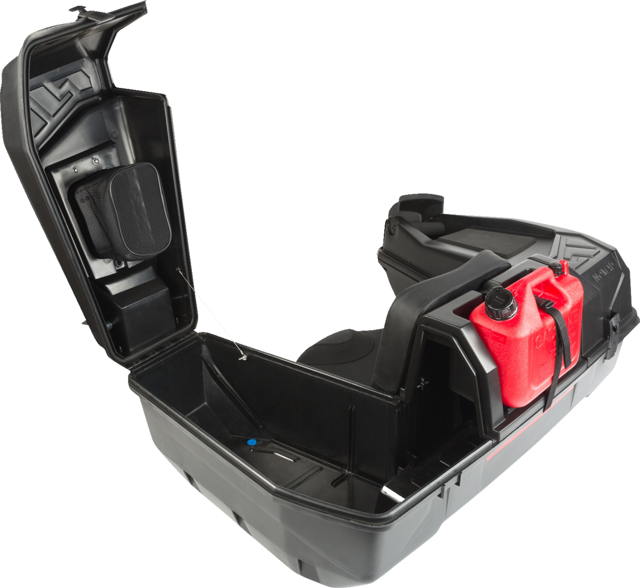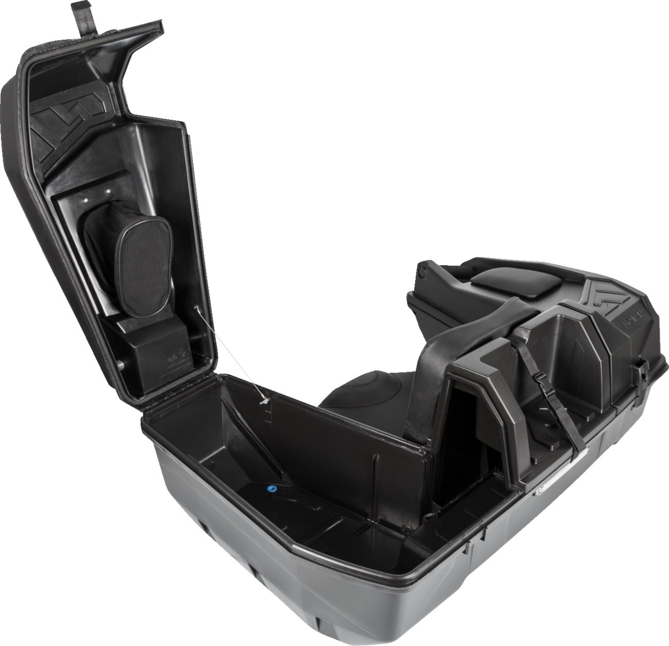 Wide variety of configurations and can be adapted to any situation115 Liter (30 gallon) storage capacity with enough space for two MX helmets, lots of tools and even a gas can Glove compartment on the left side of the trunkOffers direct access inside the trunk while seatedOptimized grip angles and elbow supports for more comfortIntegrated trunk cover gasket combines with a secure, efficient locking mechanism for an airtight and watertight seal Dimensions: 43" L x 30" W x 17" HQuick and easy installation