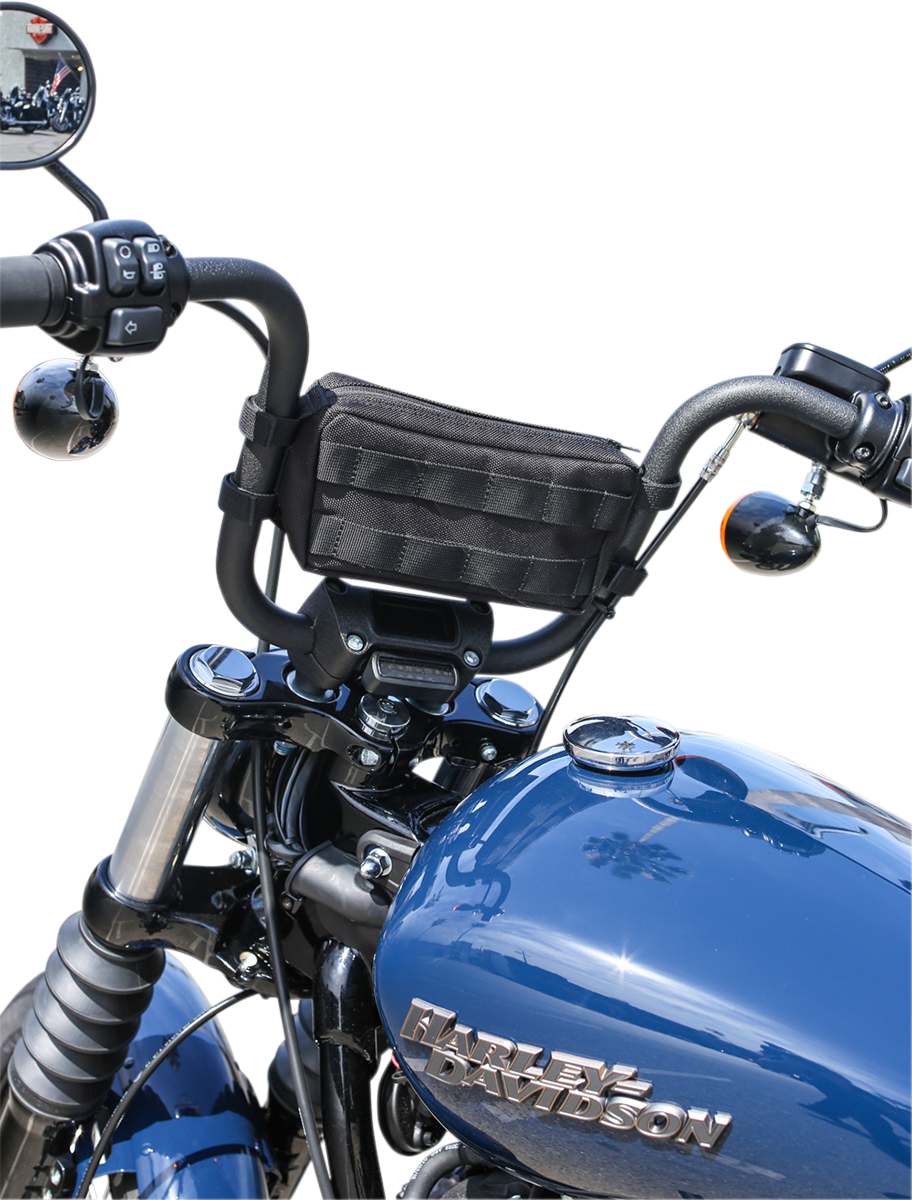 Four quick-attach straps and MOLLE webbing allow for multiple mounting positionsConstructed from 1680D ballistic nylonDimensions: 9" L x 3.5" W x 4" TWorks great with Ape HangersHi-viz interiorYKK® zipper