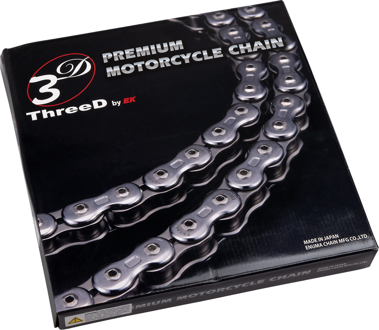 Precise forging process leads to a stiff chain for better acceleration and more efficient engine workLightening hole allows for a lighter chain without compromising strength while removing mud and dispersing heat more efficientlyImprovement in transmission efficiencySpecial pin with holes in both ends allow the chain to be lightenedEdge-cut inner plate reduces friction and allows for smooth engagement with sprocket