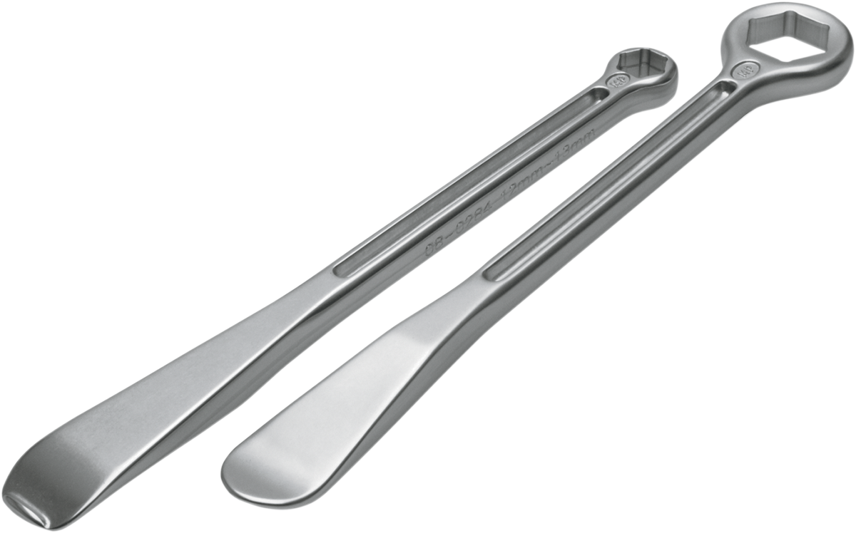 Features Perfectly contoured tire lever on one end and a unique combination stepped 12 mm - 13 mm box end wrench on other end for turning rim lock nuts or a hex box wrench sized for axle nuts on other end Hex ends for axle nuts are rated for a maximum torque of 90 ft-lbs Tire spoons with axle nut hex wrench or rim lock nut set Specs
