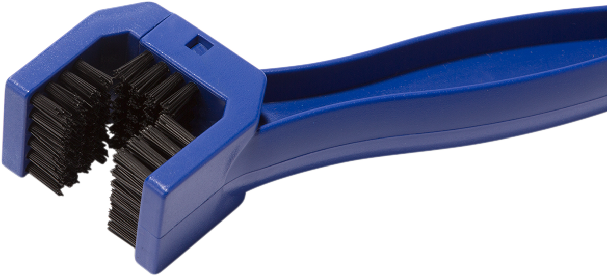 Double-ended brush for cleaning chains and other componentsThree-sided brush to clean chain rollers and side plates in one operationLong, straight bristles on opposite end to clean hard to reach areasDurable nylon brush and high quality plastic handle