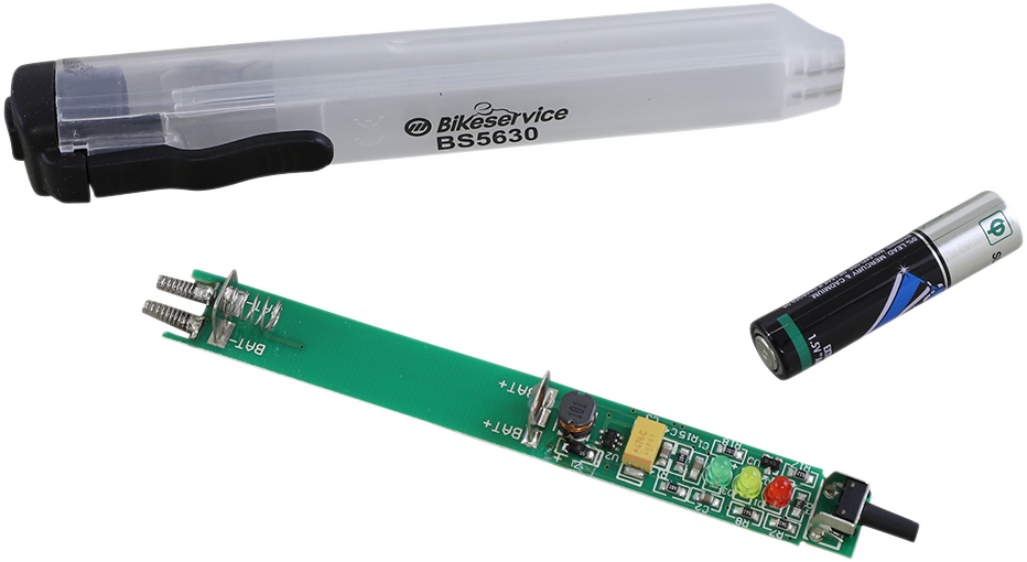 Quick and effective tester shows the condition of brake fluid with a colored LED responseYellow LED: Moisture between 1.5% and 3.0% (Marginal)Red LED: Moisture greater than 3.0% (Failed)Green LED: Moisture less than 1.5% (Good)All LED flashing: change battery