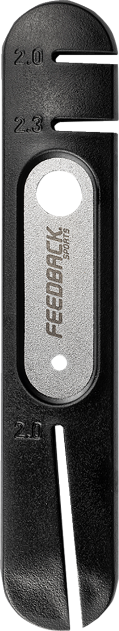 Compact, lightweight, and portable form factorDeep, 2 mm truing slot plus shallow 2.0 mm and 2.3 mm slots for different rotor depthsStrong steel core with overmolded nylon surfaceSure grip surface and comfortable in hand for delicate brake rotor truingNon-marking nylon rotor truing surfacesTwo different tuning depths for precision truing of disc brake rotorsAngled design promotes ample spoke clearance and efficient leverageTapered tip can double as a brake pad piston press