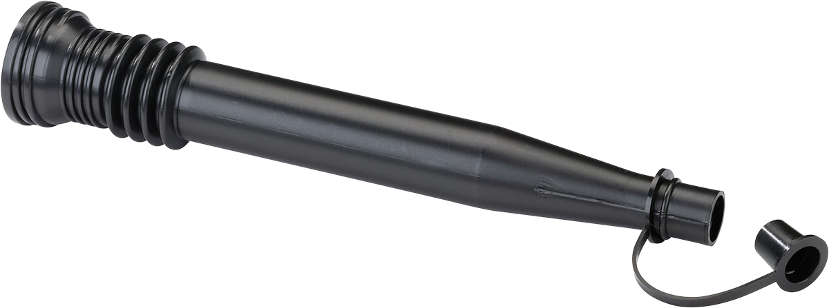 Complete with stopper cap and hang tabDouble threads to fit most containersMulti-purpose flexible funnel spout3/4" O.D. tip