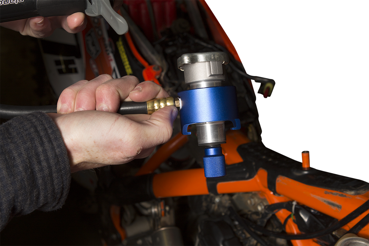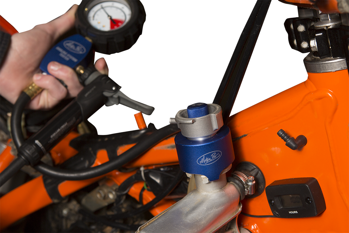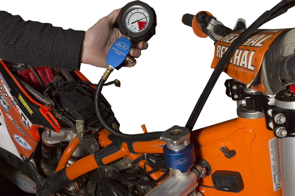 Unique design allows you to test the cooling system on a running engine to check for leaks or excessive pressure when system is hotUnique radiator adapter will work with most motorcycle, ATV and UTV applications equipped with a 30 mm spoutUse with a common hand pump to pressurize a non-running system (pump not included)Tests radiator and radiator cap for leak and correct pressure release limitRemote, accurate, easy to read gauge makes readings and diagnosis easyPressurize motorcycle or ATV cooling system to check for leaks