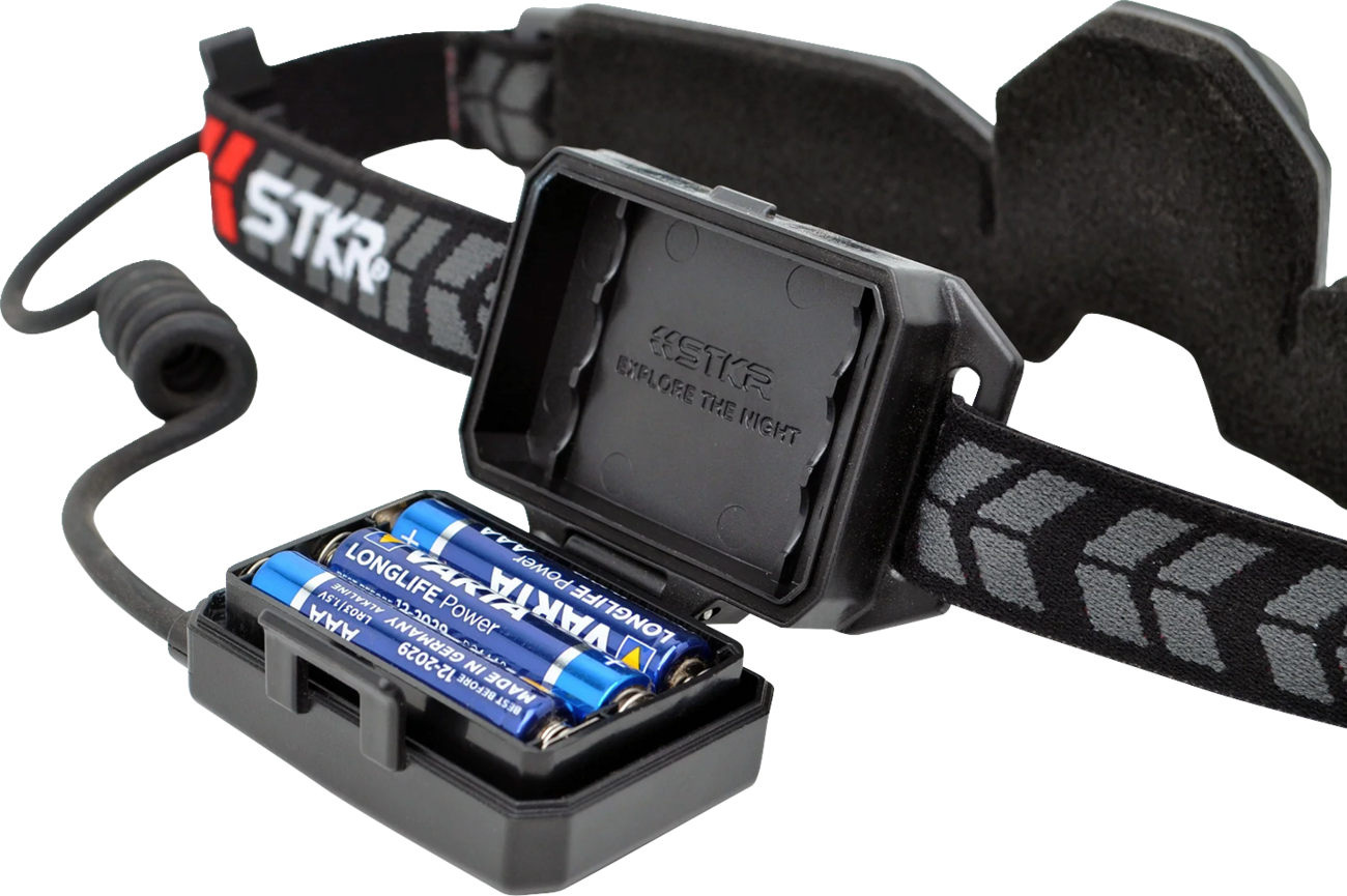 Powerful flexible spotlight with 240° "halo" style flood lighting from 2 side mounted C.O.B LED's - white300 total true lumens; spotlight: 200 lumens, floodlights: 200 lumensPositional center CREE LED spotlightFlexible body with shape-loc spotlightDurable ABS battery case3 AAA batteries includedIPX4 weather resistant6 lighting modesComfort fit foamPress Power/Mode to turn onPress to cycle through modes:1 - High spot/high flood2 - High spot3 - High flood4 - Low spot5 - Low flood6 - High spot + flashing hazard flood7 - OffSpotlight: high 6 hours, low 13 hoursFloodlight: high 6 hours, low 13 hoursSpotlight & floodlight: high 3.5 hoursHigh flashing: 5 hoursDimensions: Size: 8.9” x 2.7” x 1.1” (22.6 cm x 69 mm x 28 mm)Lightweight at only 5.4 oz (153 g) battery included, 4.2 oz (116 g) battery excluded