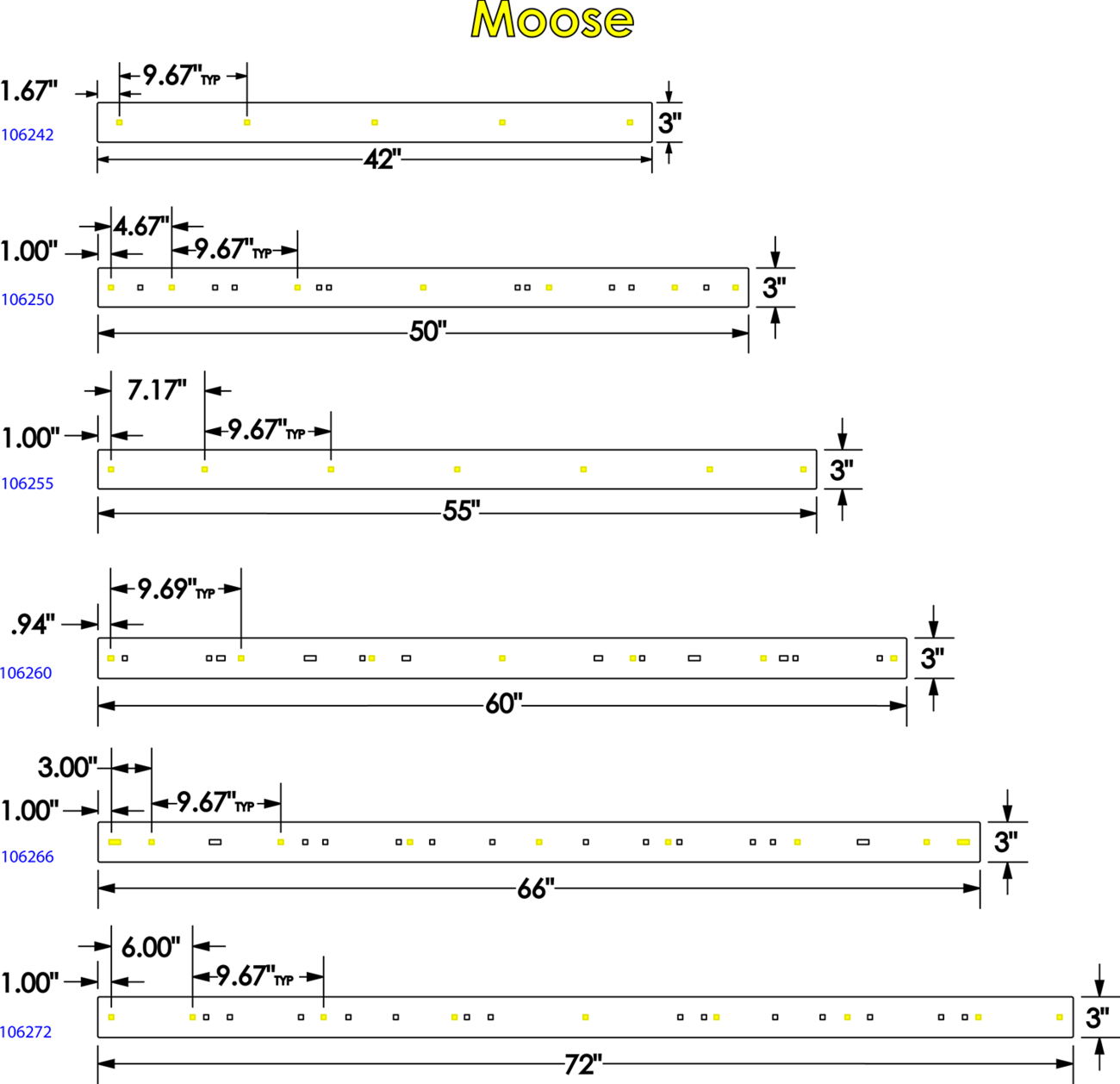 Replace old or worn wear bars; Compatible replacements for Moose and Warn Snow Plow BladesFor use with KFI Flex, Pro-S Series, PRO-POLY & Open Trail Plow Blades 48"-72"Double sided wear bar; reversible designPowder-coated 3/16" x 3.00" Grade 50 steel constructionDoes not include hardware kitTwo piece design to help reduce shipping costs and eliminate warehousing and freight issuesMade in the USA