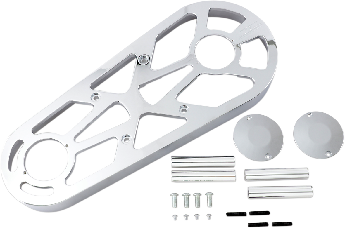 Billet aluminum construction with a chrome-plated finishStyled to match Belt Drives' popular Top Fuel belt drive coverFits 3" open BDL belt drive systems with 3-1/2" x 4" motor plate bolt patternMade in the U.S.A.