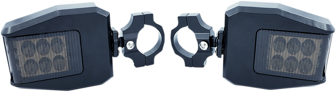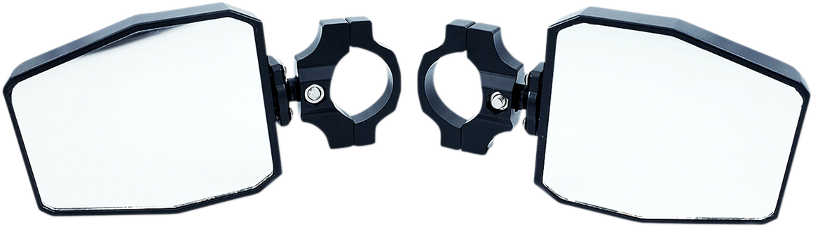 Universal roll bar mount rear view mirror set with 45 watt Cree LED flood lightBlack ABS plastic housing with glass mirror, fully adjustableRoll bar mount for 1.75” & 2.0” roll bars- Any angle45 watt Cree LED light – 2,400 lumen flood lightAll wire needed to route into your dash and switch you choose