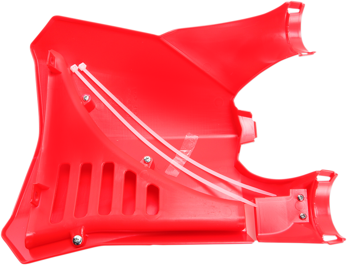 Secures brake line behind number plateEliminates damage to graphics and brake line accidentsProtects fork tubes from roostSpecs