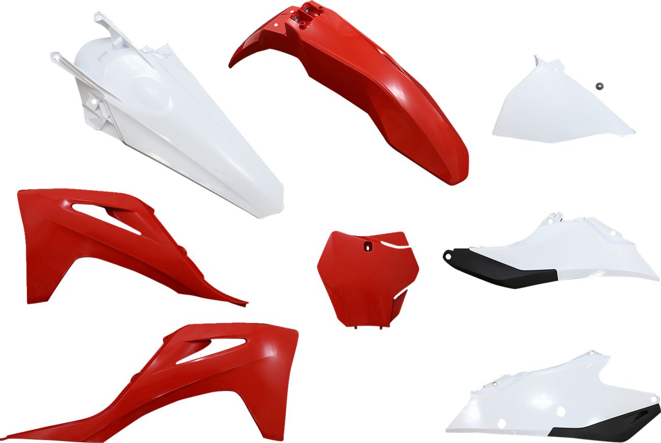 Pre-drilled pieces mount easily to stock locationsBody kit includes front and rear fender, radiator covers, side panels and front number plate; OEM matches stock bike colorEasy bolt-on installationMade in ItalySpecs