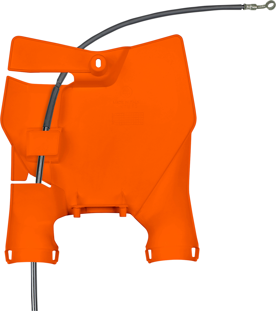 Secures brake line behind number plateEliminates damage to graphics and brake line accidentsProtects fork tubes from roostSpecs