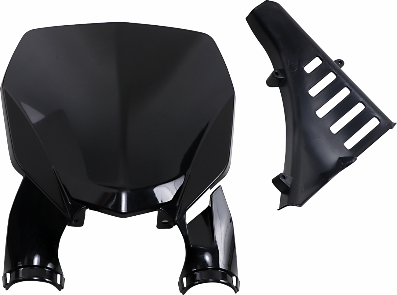 Secures brake line behind number plateEliminates damage to graphics and brake line accidentsProtects fork tubes from roostSpecs