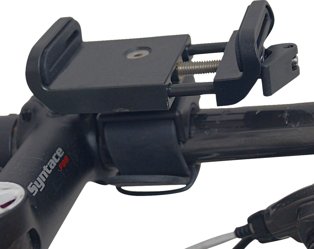 Universal phone holder with rubber strap to mount on bars 2" and smallerWorks great on handlebar, stem, or frameWorks great on any type of bike/e-bike or on an exercise bike/treadmillPhone locks in place and is secure with cam lockClamp can be rotated 360° for portrait or landscape viewing
