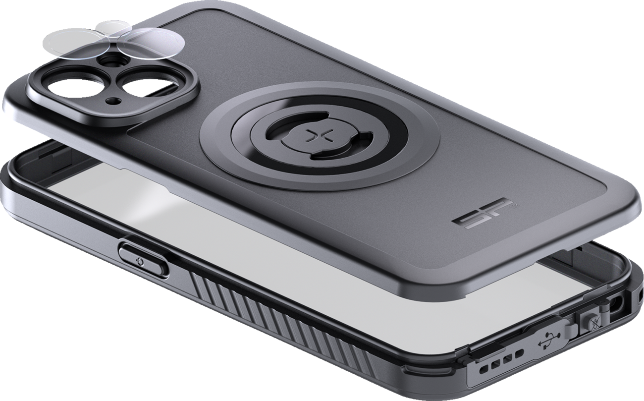 Rugged and waterproof case360° protection for your phone in any terrainIntegrated locking mechanism and magnets for easy attachmentMagsafe®-compatible for quick and convenient charging on the goFull touchscreen usabilityAdditional camera lens protection