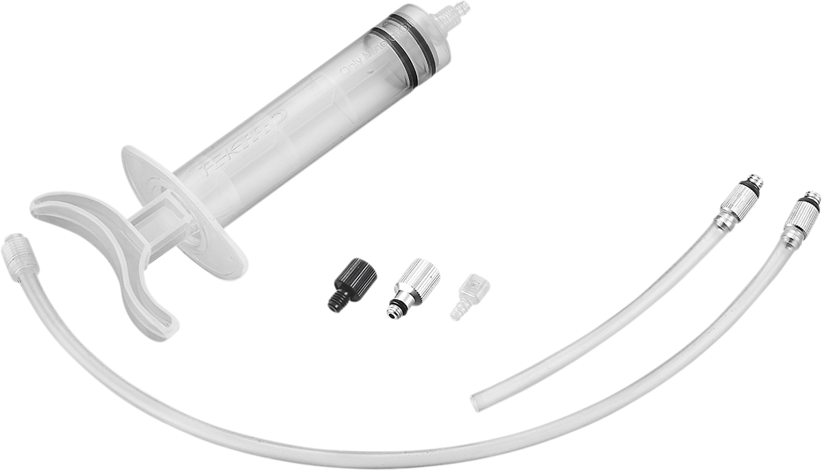 • Includes the following: Syringe, Plastic tubing for syringe/caliper, Plastic tubing for lever/overflow, and M5, M6, & M7 Silver bleed fittings