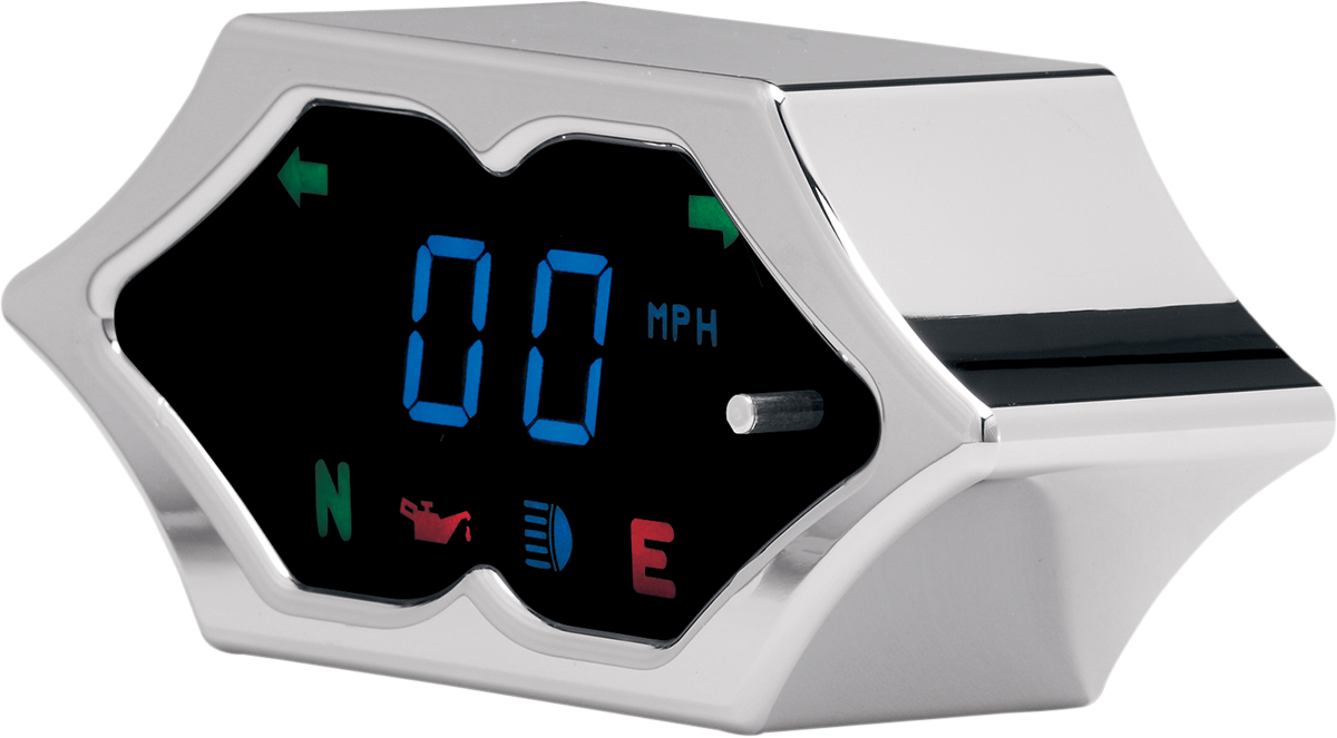 High-brightness readout is easy to read, even in direct sunlightAdjustable 0-255 mph/km/h speedometer with odometer and trip meterFeatures indicators for turn signals, high-beam, neutral, low oil pressure and check engineSending units and mounting brackets available separately for use with electronic or cable drive systems; handlebar clamp mounts for American IronHorse motorcycles allow gauges to be mounted above or below handlebars and include wiring harness that plugs directly into stock wiring