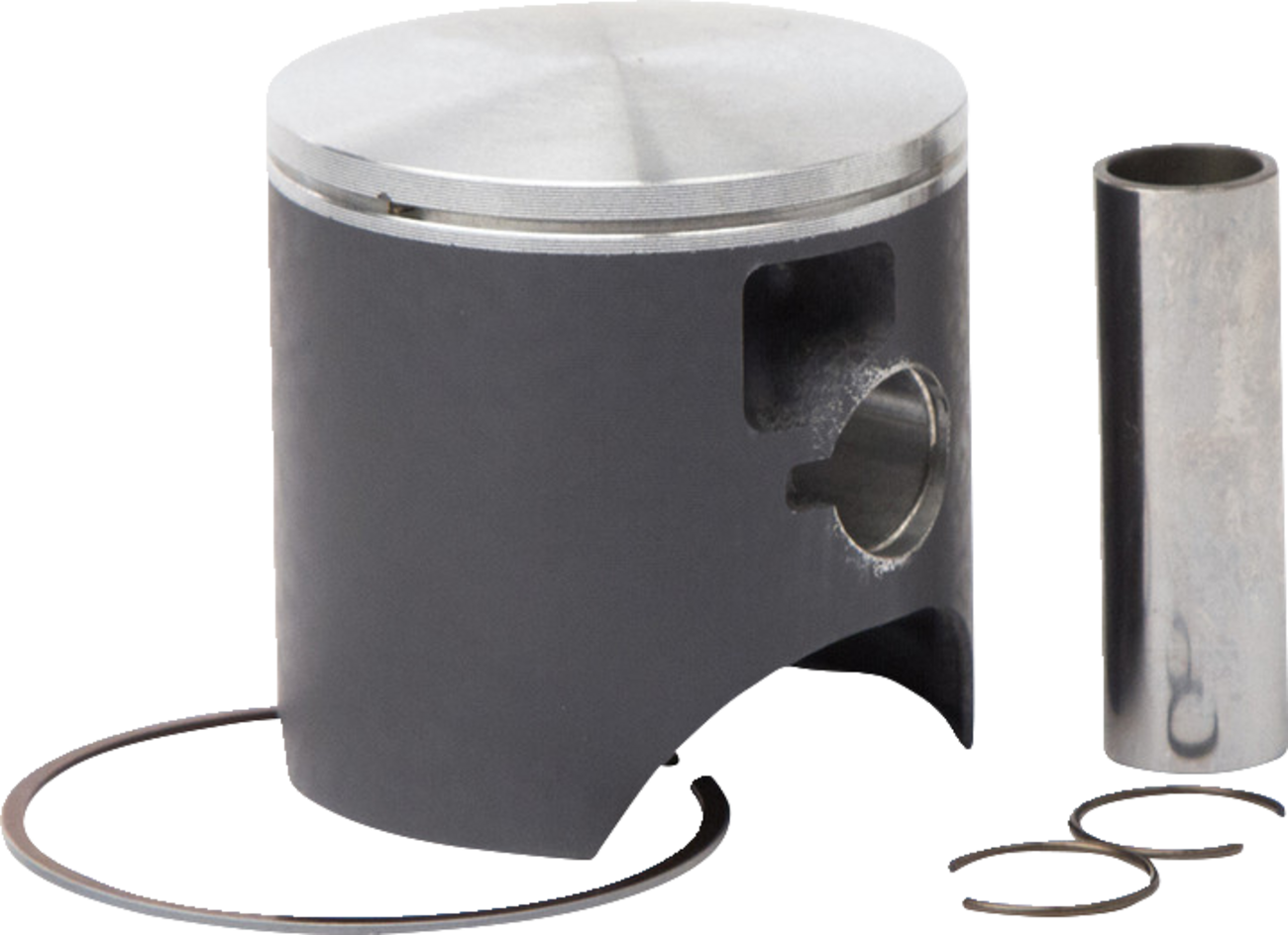 The piston is heat treated with a T-5 hardening and tempering cycleThe piston skirt is coated with a high-tech Molybdenum Disulphite coating for faster break-in time and increased piston lifeGravity-cast aluminum alloy (not forged) with 18% silicone contentCast OE replacement pistonKit includes piston, rings, wrist pin and circlipsSpecs