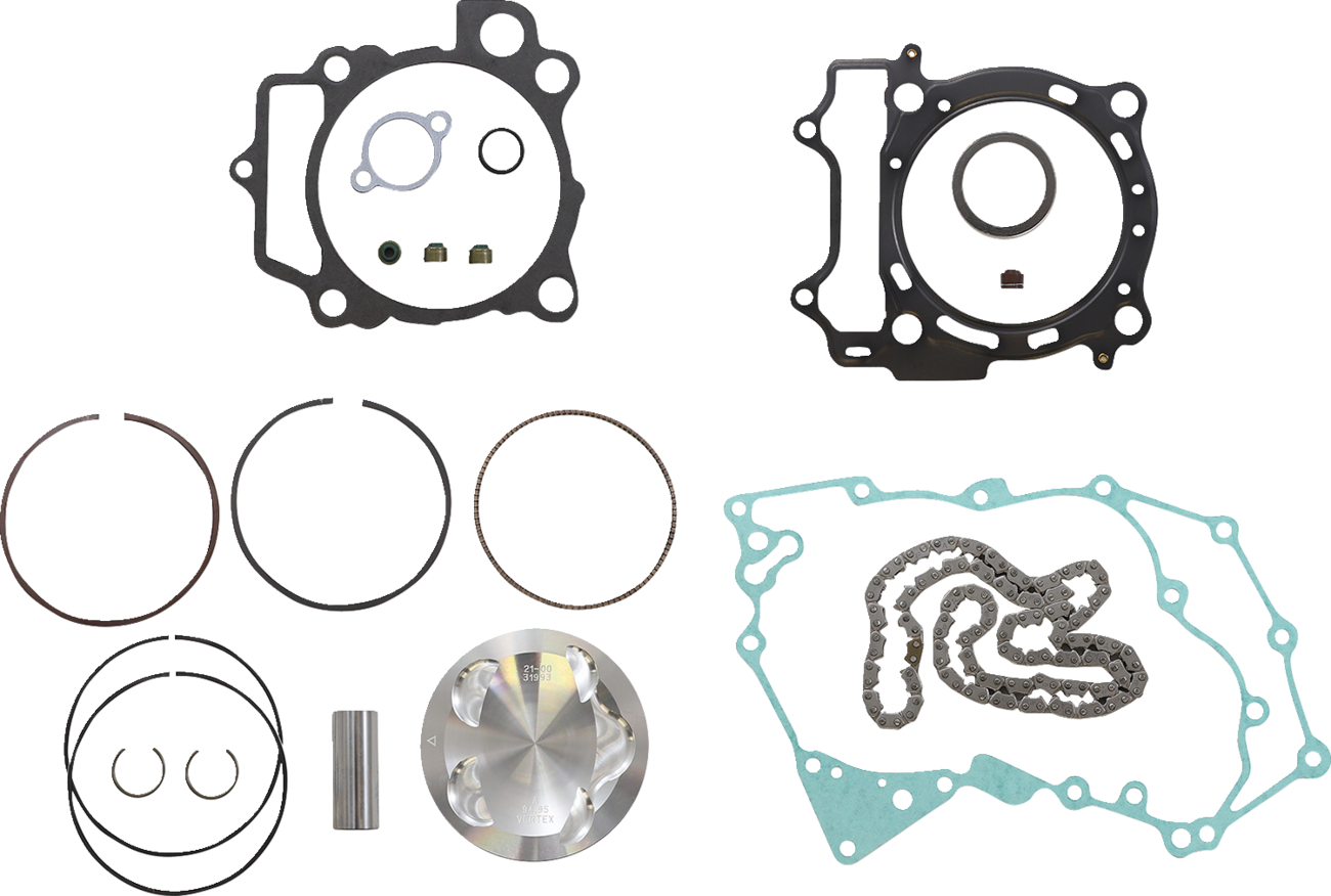 • Top-end piston kit includes piston, rings, pins, circlips, top-end gaskets and cam chain