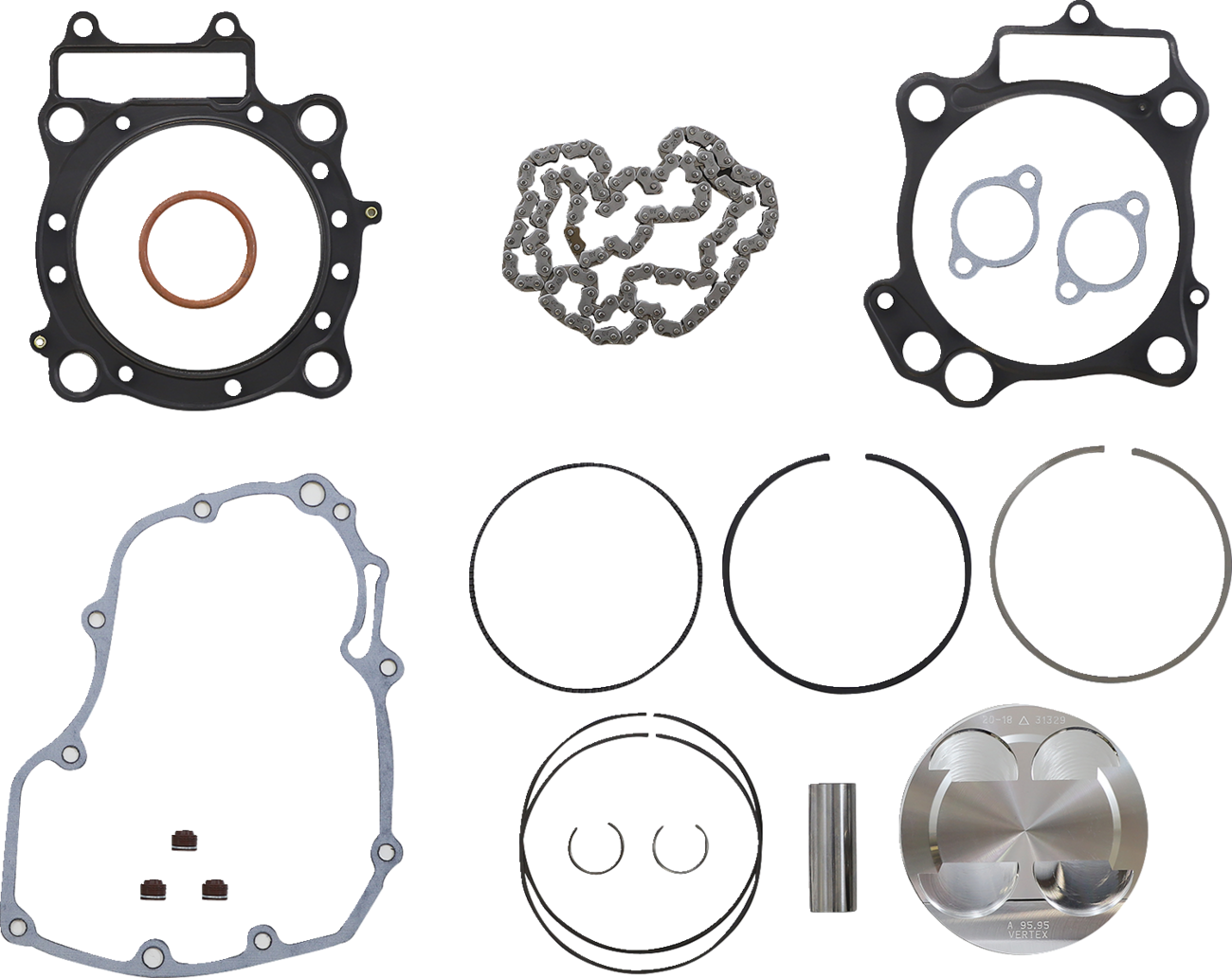 • Top end kit includes piston, rings, pins, circlips, top end gaskets and cam chain
