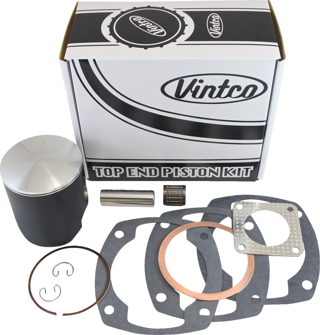 Includes a piston, rings, pin and clips, top end bearing and a full top-end gasket kit (head gasket, base gasket, intake gasket, and exhaust gasket)