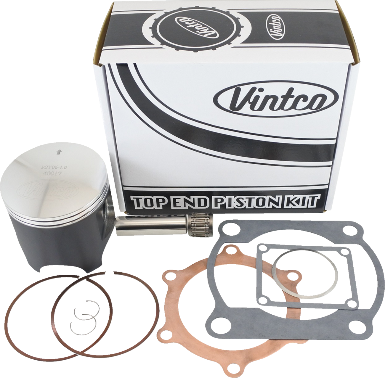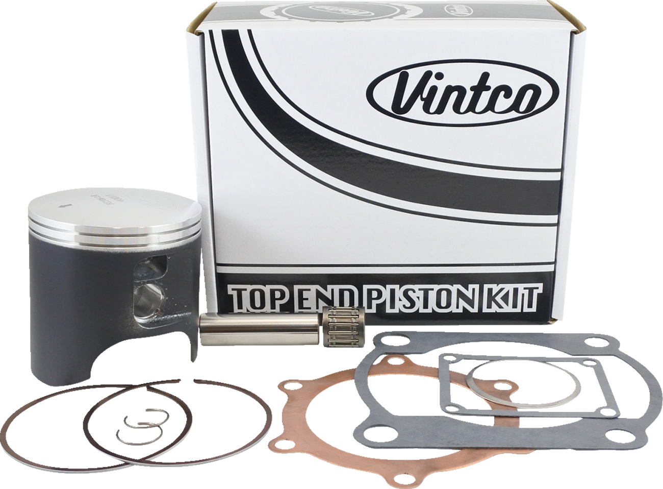 Includes a piston, rings, pin and clips, top end bearing and a full top-end gasket kit (head gasket, base gasket, intake gasket, and exhaust gasket)Specs