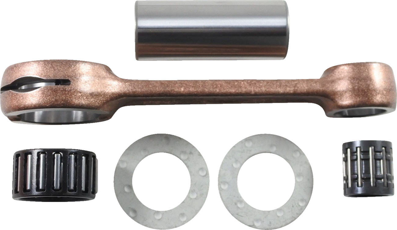Heavy duty forged connecting rods ensure as good or better than OEM fitment and performanceImproved ventilation slots for improved bearing lubricationKit includes connecting rod, crank pin, connecting rod bearing, wrist pin bearing, and thrust washersSpecs