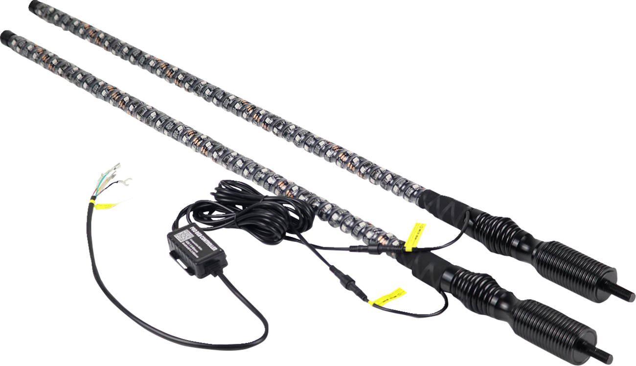 Easy removal magnetic base. The built-in spring will provide the flexibility needed to prevent snapping the rod at the base360° of Awesome Color - Insanely bright LEDs always ensure you’re visible and a unique spiraled design means you get more LEDs per foot of whipChasing function with 300 different colors and 200 patterns, including flash, strobe and fade-through-colors, stream, cascade and different color combinations from top, bottom and middle; adjust speed/brightness or lock on one colorBluetooth® control via a free, easy-to-use App. App provides ultimate functionality including music synchronization, color, pattern and light effect customization, color brightness and speed control, and group LED controlIP 67 Dust and WaterproofIncludes remote, wiring harness, Black Whip It flag, American Flag and hardware