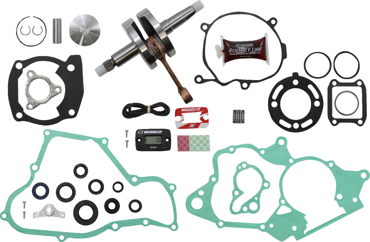 Includes all top and bottom-end components for a complete engine rebuild4-stroke kit includes a premium forged piston kit with stock compression ratio and a high-quality cam chain2-stroke kit includes a Pro-Lite® pistonCrankshaft and rod assembly designed and inspected to assure durabilityKit includes main bearings, seals, gaskets, an hour meter and bracketSpecs