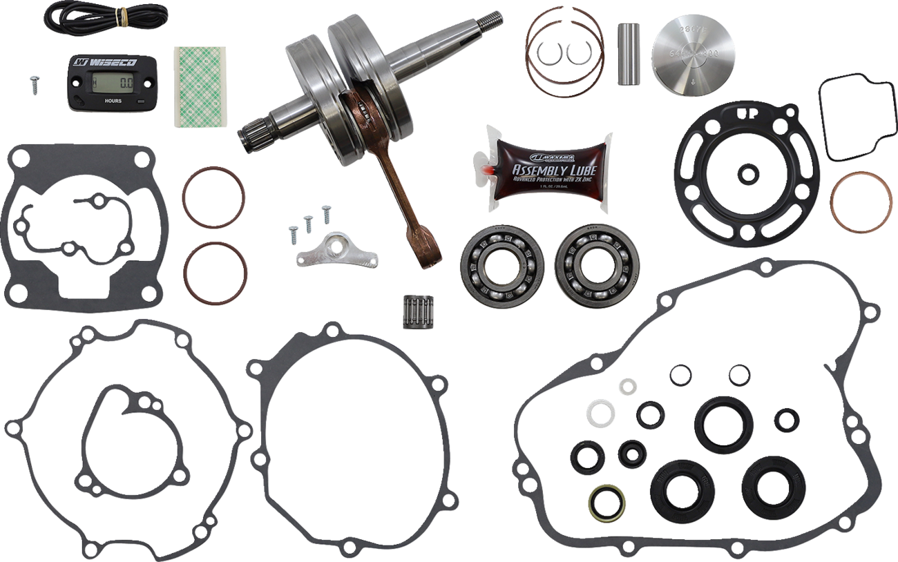 Includes all top and bottom-end components for a complete engine rebuild4-stroke kit includes a premium forged piston kit with stock compression ratio and a high-quality cam chain2-stroke kit includes a Pro-Lite® pistonCrankshaft and rod assembly designed and inspected to assure durabilityKit includes main bearings, seals, gaskets, an hour meter and bracketSpecs